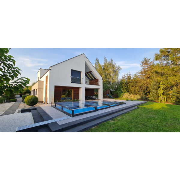 WICHTIG: Poolüberdachungen TERRA werden ohne die Möglichkeit des Eingangs in Pool geliefert. Aufgrund der erforderlichen geringen Höhe dieses Produkts ist es nicht möglich, unter dem Dach des TERRA-Pools zu schwimmen.