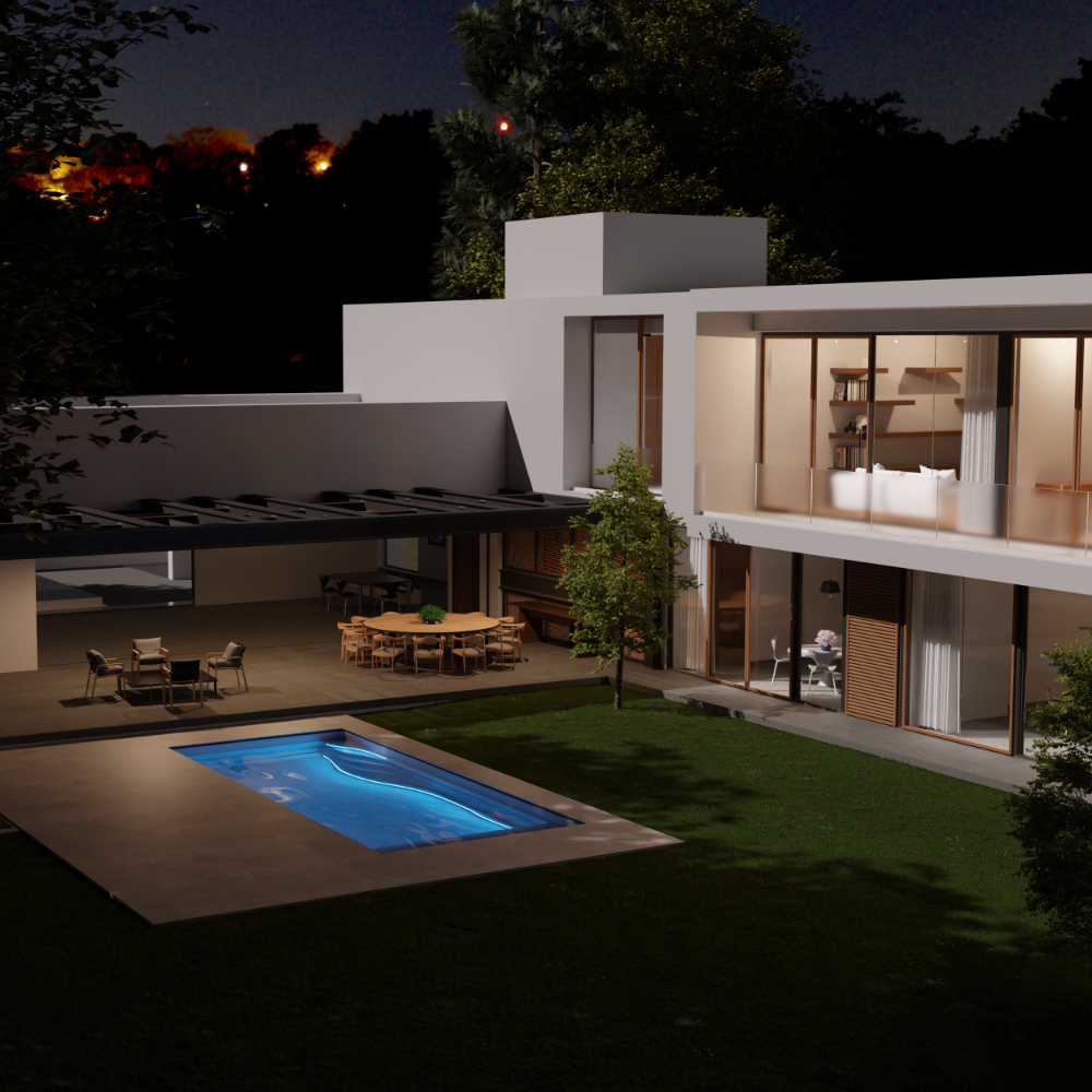 WaterRows-Pools verfügen über fest integrierte lineare LED-Beleuchtung. Diese ist nicht aufgesetzt, sondern Bestandteil des Beckens – wasserdicht (IP68), chemikalienbeständig und austauschbar. Sie sorgt für stimmungsvolle Beleuchtung und unterstreicht das hochwertige Design.