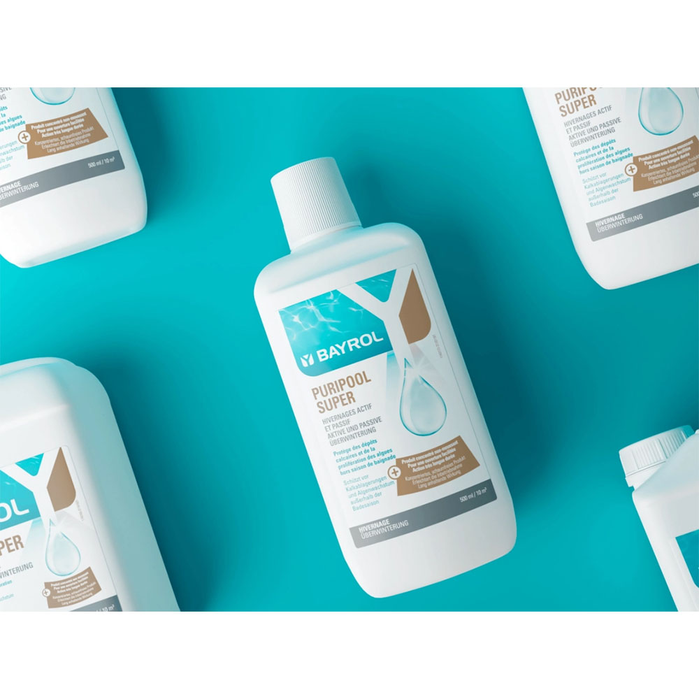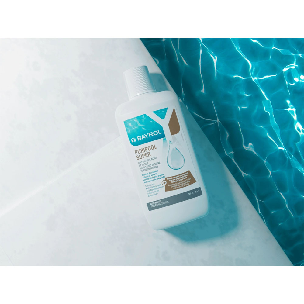 Puripool® Super ist ein chlorstabiles, schaumfreies Konzentrat zur Verhinderung von Algen- und Kalkablagerungen während der Pool-Überwinterung. Es schützt dein Becken im Winter und erleichtert die Frühjahrsreinigung – für kristallklares Wasser und weniger Aufwand beim Start in die neue Saison.