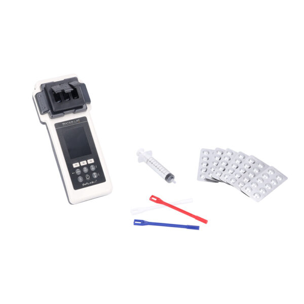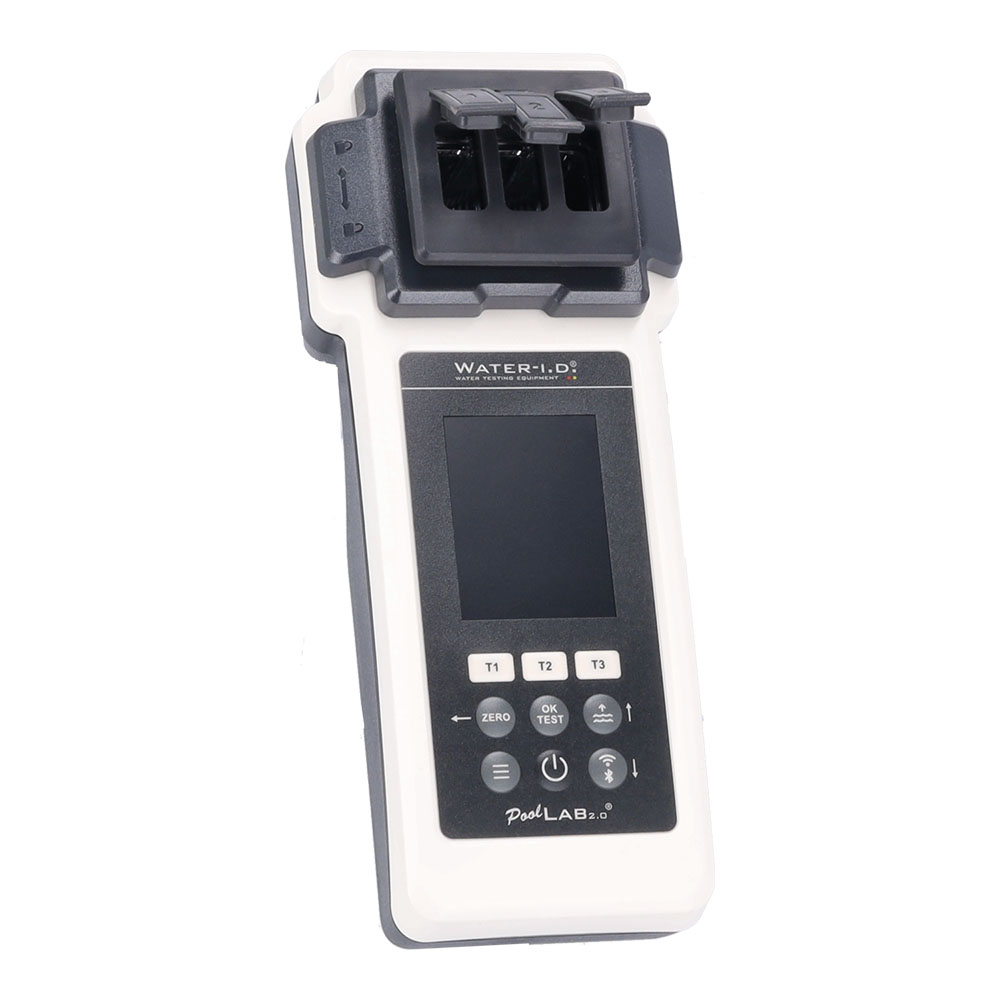 Das PoolLab 2.0 ist die perfekte Lösung für die professionelle Wasseranalyse von Pools und Spas. Die fest eingebaute, aber wechselbare 3-fach-Küvette erlaubt die schnelle Probenahme, indem das IP68 wasserfeste PoolLab einfach ins Wasser getaucht wird. 9 Tasten geben direkten Zugriff auf den ZERO-Vorgang (nur 1x pro Messreihe erforderlich) sowie auf die 24 verschiedenen Pool-Wasserparameter.